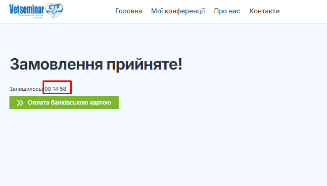 Якщо виникла помилка під час оплати, вас вибило з сайту, або ви випадково натиснули «Назад», не хвилюйтеся! Ви можете легко перевірити та завершити оплату. Для цього перейдіть у розділ «Мої конференції», оберіть «Статус моїх замовлень», а потім натисніть «Оплатити».